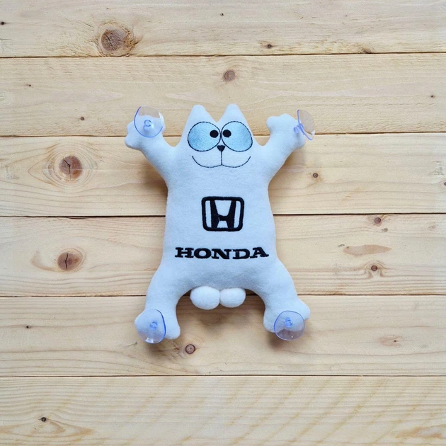 Іграшка у авто на присосках Кіт Саймона з вишивкою логотипа Honda 28 см Білий (0342)