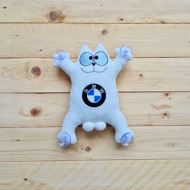 Іграшка у авто на присосках Кіт Саймона з вишивкою логотипа BMV 28 см Білий (0340)