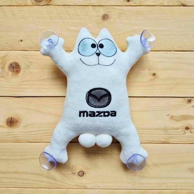 Іграшка у авто на присосках Кіт Саймона з вишивкою логотипа Mazda 28 см Білий (0337)