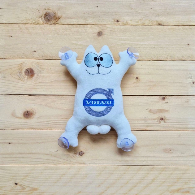 Іграшка у авто на присосках Кіт Саймона з вишивкою логотипа Volvo 28 см Білий (0338)