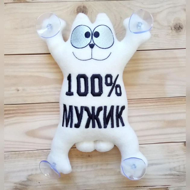 М'яка іграшка Кіт Саймона на присосках "100 мужик" 28 см Білий (0304)
