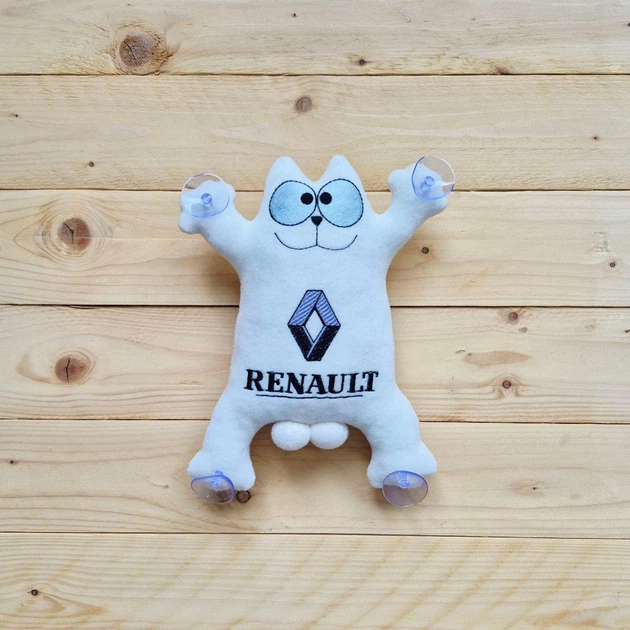 Іграшка у авто на присосках Кіт Саймона з вишивкою логотипа Renault 28 см Білий (0336)