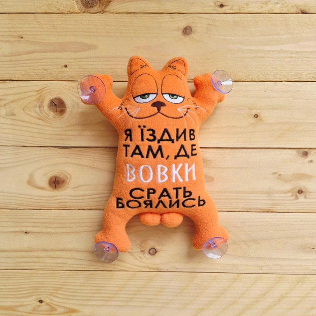 М'яка іграшка Кіт Гарфілд на присосках "Я їздив там де вовки" 28 см Оранжевий (0324)