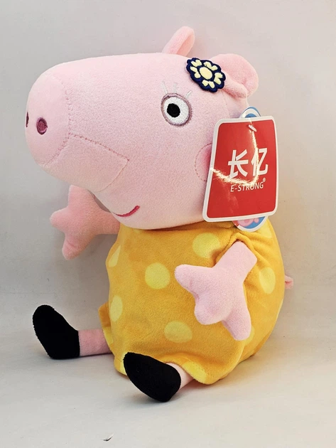 Плюшева іграшка Свинка Пеппа 25 см у жовтій сукні в горошок Peppa із родини Пеппа Рожева