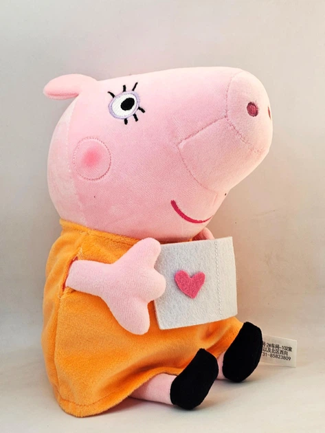 Плюшева іграшка Свинка Пеппа з вишитим серцем 30 см Peppa із родини Пеппа Рожева