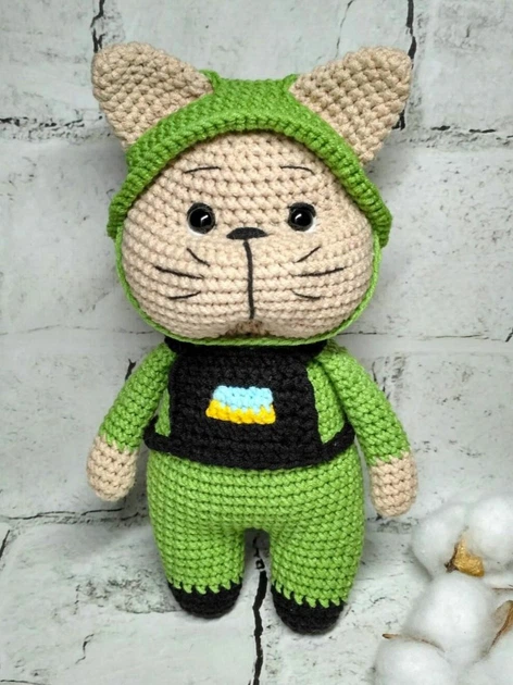 М'яка іграшка ручної роботи в'язана амігурумі Hand Made Котик ЗСУ 22 см 202-91