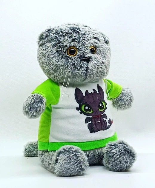 Котик Басик у футболці з Драконом Беззубиком - м'яка іграшка 33 см