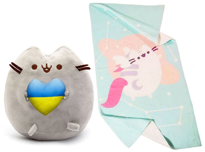 М'яка іграшка Pusheen cat 12х15см Кіт-єдиноріг веселка та рушник Pusheen cat 50х100см v-12398