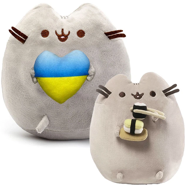 М'яка іграшка Пушин кет Pusheen cat 23х25см з Серцем та М'яка іграшка Pusheen cat 12х15см з Суші в лапках Сірий n-11619