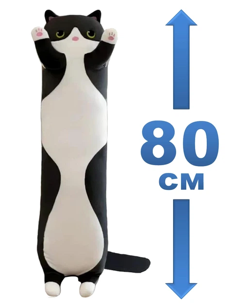 М'яка плюшева іграшка подушка обіймашка антистрес Довгий Кіт Батон 80 см чорний