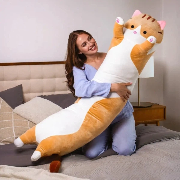 Гігантська м'яка плюшева іграшка Довгий Кіт Батон котейка-подушка 110 см. Колір: коричневий
