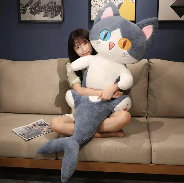 Дитяча м'яка плюшева іграшка-подушка Акула-Кіт Сірий 85см