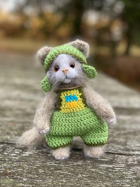 Котик-військовий, в'язана іграшка, всі частини тіла гнутися, Совушка