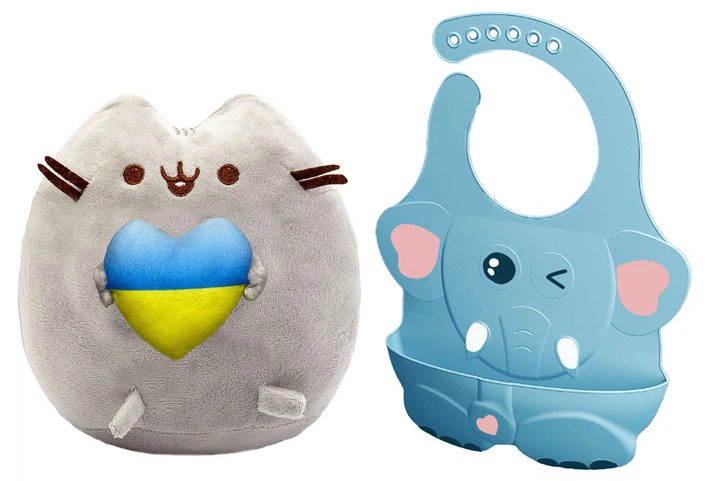 М'яка іграшка Pusheen cat S&T із серцем та Силіконовий слинявчик 4Д (vol-10577)