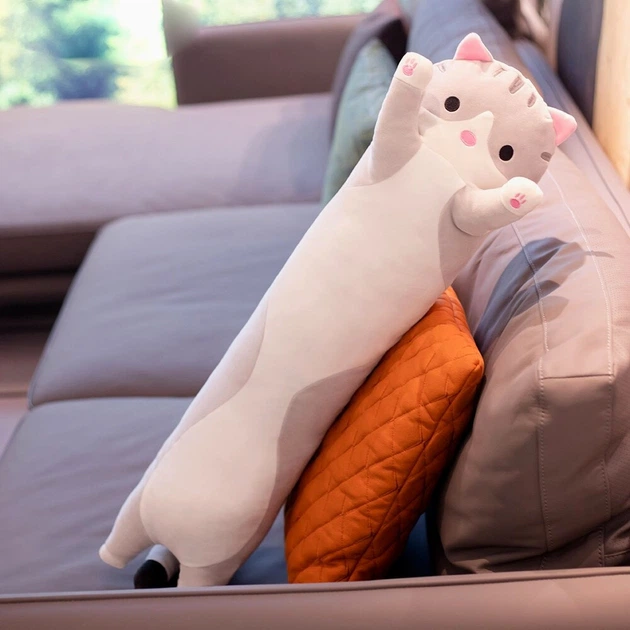 М'яка іграшка подушка Кіт Батон 110 см Сірий Плюш Антистрес від 3 років