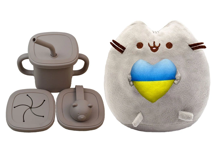 М'яка іграшка Pusheen cat S&T з серцем та Поильник-непроливайка ведмедик силіконовий Какао (vol-10566)