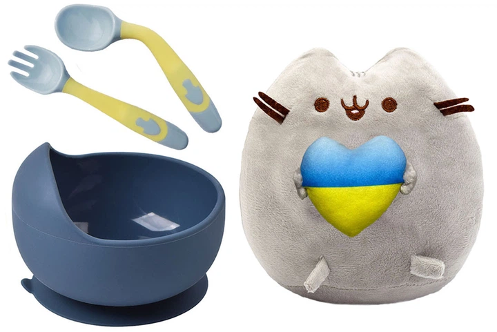 М'яка іграшка Pusheen cat S&T глибока тарілка Y10 Синій та прилади Жовто-синій (vol-10590)