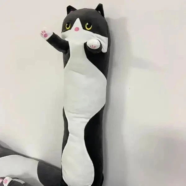 М'яка іграшка-подушка Кіт Батон обіймашка 90см Чорний з білим