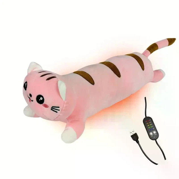 Обігрівальна мяка теплова плюшева іграшка подушка Котик рожевий 50 см