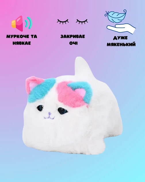 Інтерактивна м'яка іграшка симулятор Муркотливий Котик – нявкає, заплющує очі, виляє хвостиком Білий