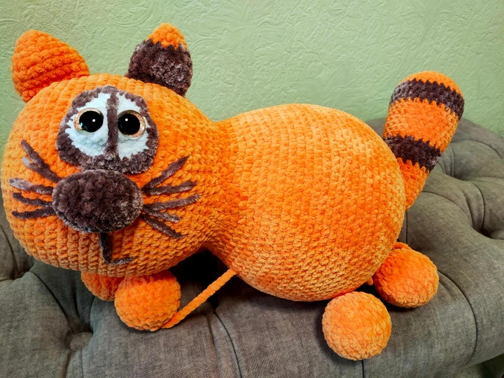 Іграшка Котик Кішечка помаранчева велика м'яка в'язана ручна робота подарунок сувенір