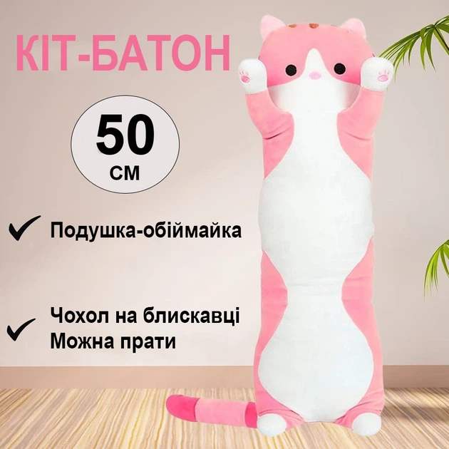 М'яка Іграшка Кіт Батон рожевий 50см