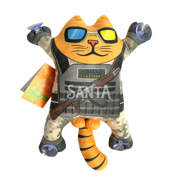 М'яка іграшка Котик "Слава Україні! Героям Слава" на присосках в машину 28*24*7 см (00284-149)