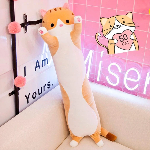 Плюшева іграшка-подушка довгий кіт батон 50 см