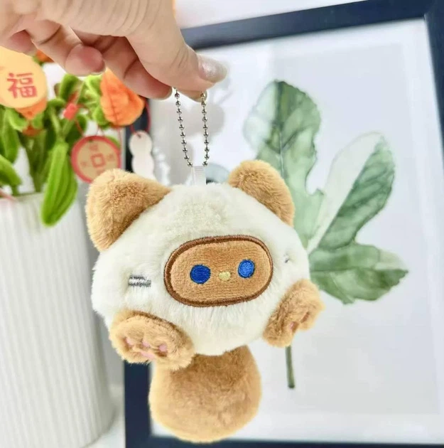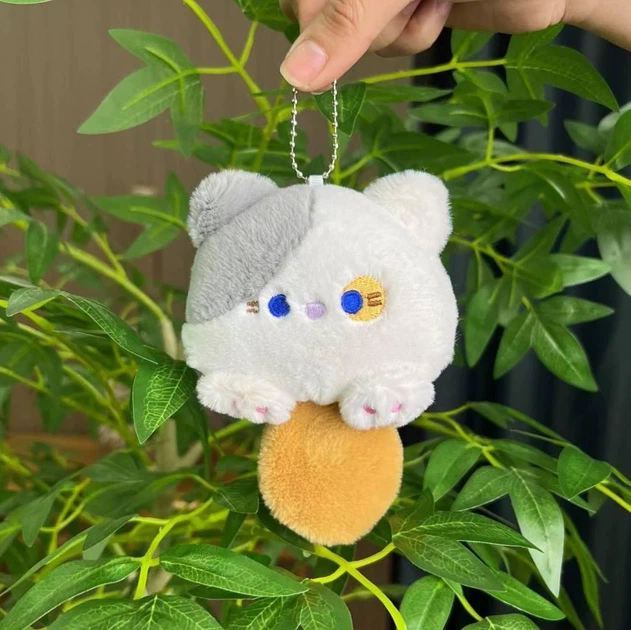 М'яка плюшева іграшка Sunti Брелок Котик триколірний з пищалкою Милий кіт з довгим хвостом 14 см