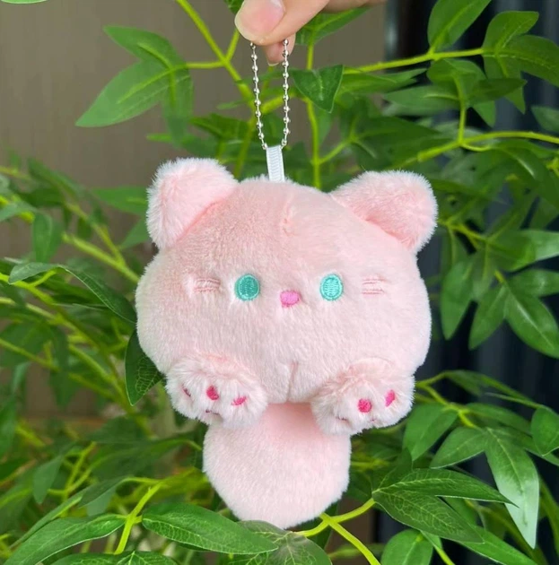 М'яка плюшева іграшка Sunti Брелок Котик рожевий з пищалкою Милий кіт з довгим хвостом 14 см