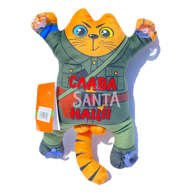 М'яка іграшка Котик "Слава нації, смерть ворогам" на присосках до машини 28*24*7 см (00284-149)