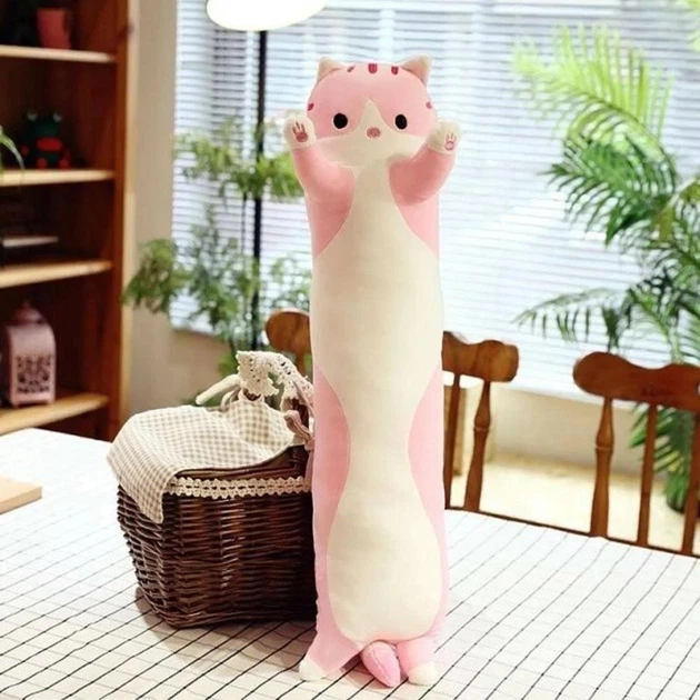 Плюшева м’яка комфортна подушка-обіймашка Кіт Батон для сну та відпочинку 50 см Рожевий з Білим