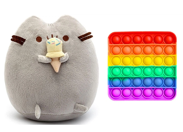 Набір м'яка іграшка кіт з морозивом Пушини кет 15 х 12 см Сірий і Іграшка антистрес Pop It (vol-1237)