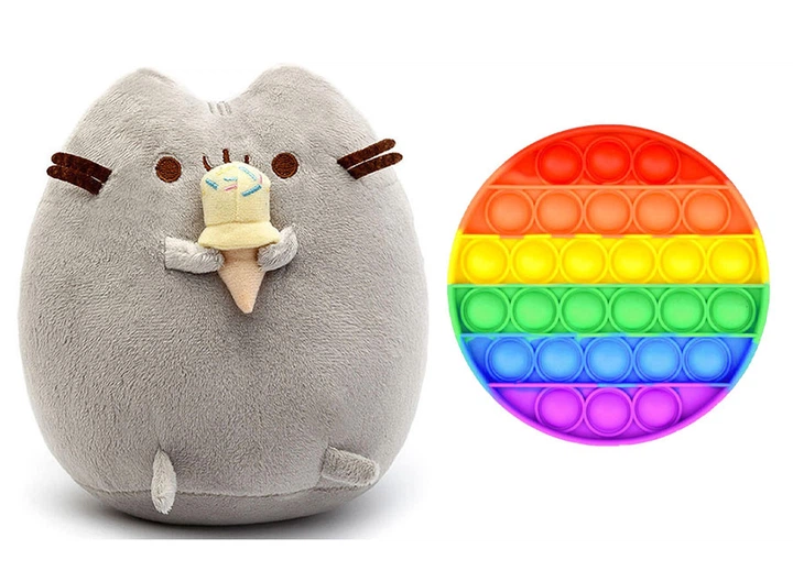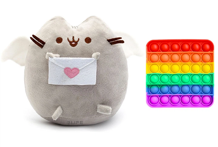 М'яка іграшка Pusheen cat Кіт-єдиноріг веселка 12х15см Сірий та Дитяча іграшка юла Рожевий v-12301