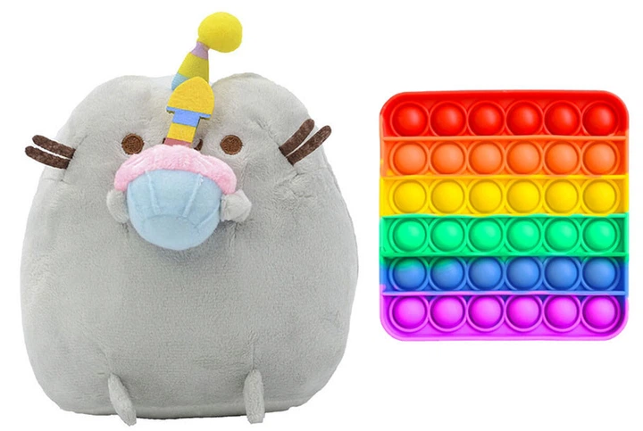 М'яка іграшка кіт з кексом 12 х15 см Пушини кет Сірий і іграшка антистрес Pop It квадрат (vol-1241)