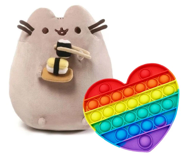 М'яка іграшка кіт з суші 12 х 15 см Пушини кет Сірий і іграшка антистрес Pop It сердечко (n-1801)