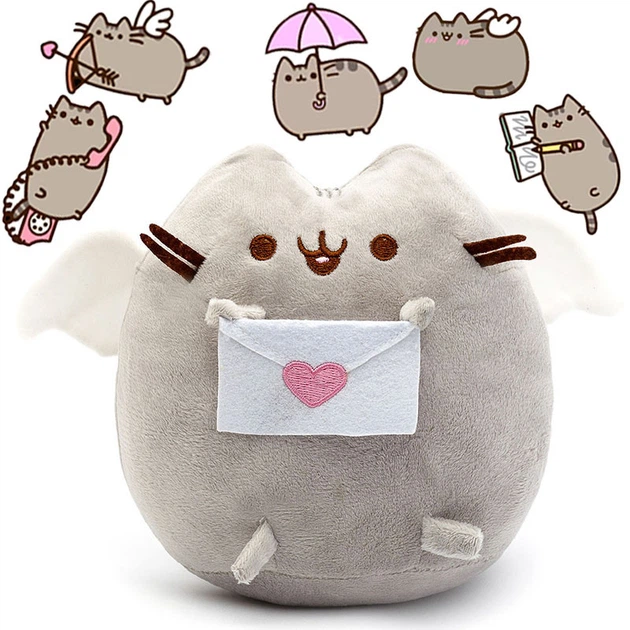 М'яка іграшка Pusheen cat Кіт з листом12х15см Сірий та Набір 5шт наклейок стікерів v-12317