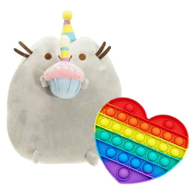 М'яка іграшка кіт з кексом 12 х 15 см Пушини кет Сірий і іграшка антистрес Pop It сердечко (vol-1803)