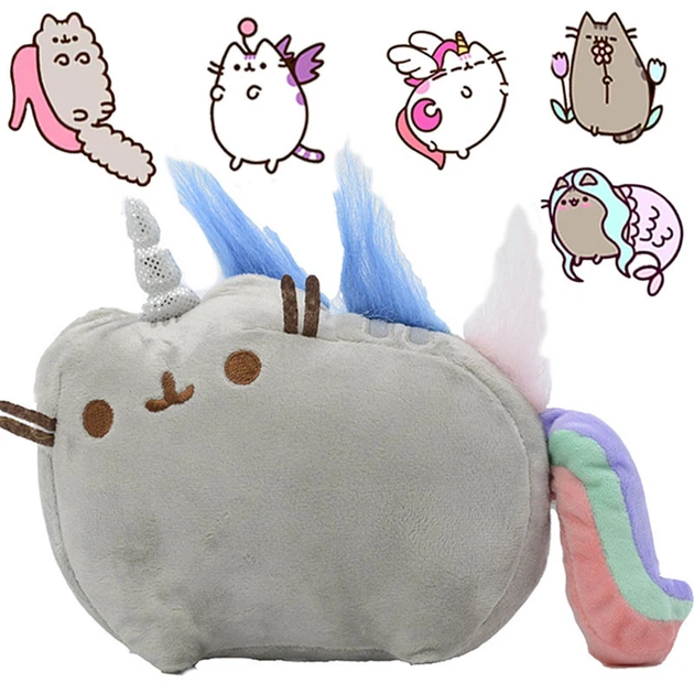 М'яка іграшка Кіт-єдиноріг веселка 12х15см Сірий та Набір 6шт наклейок стікерів v-12311