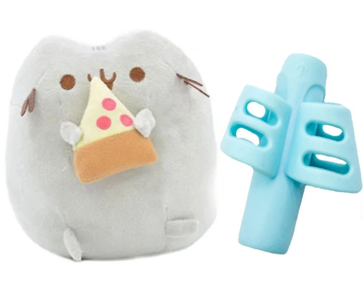 М'яка іграшка кіт з шматочком піци Пушини кет Сірий і насадка для правильного листи Блакитний (vol-1787)