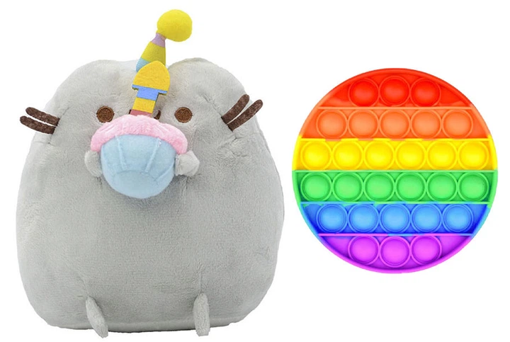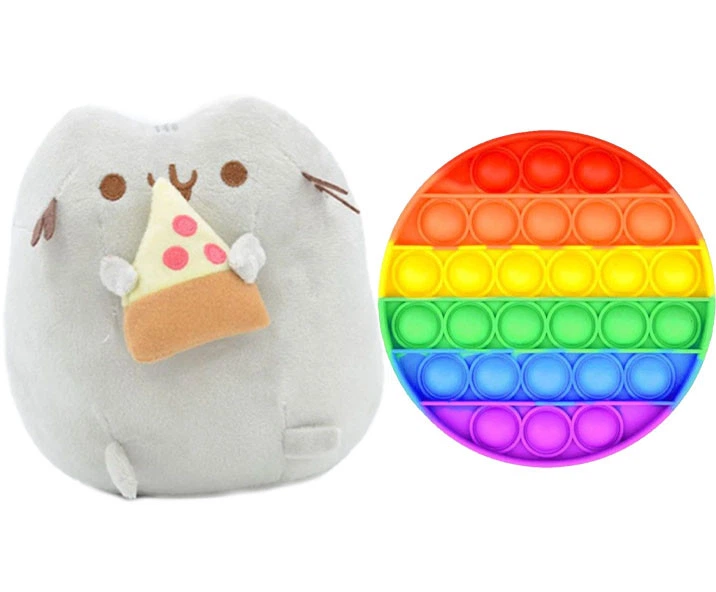 М'яка іграшка кіт з піцою Пушини кет 12х15см Сірий і Іграшка антистрес Pop It коло (n-1696)