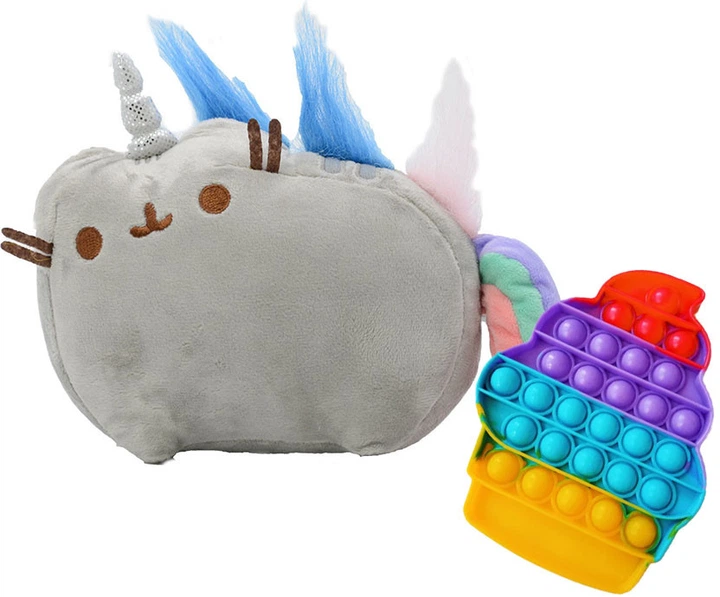 М'яка іграшка кіт-єдиноріг веселка Пушини кет 12х15см і іграшка антистрес Pop It морозиво (n-1797)