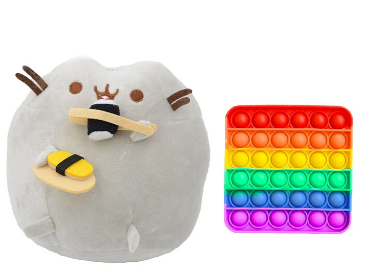 М'яка іграшка кіт з суші 12 х 15 см Пушини кет Сірий і іграшка антистрес Pop It квадрат (vol-1246)