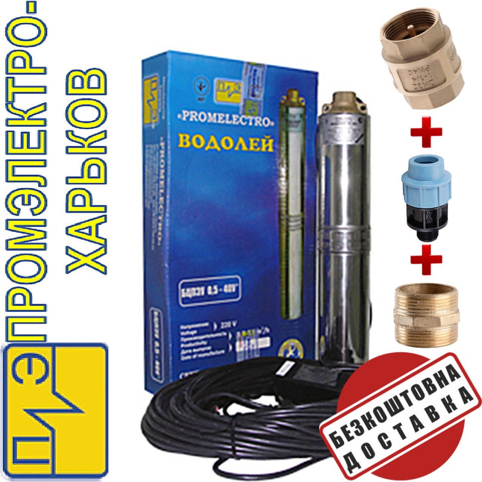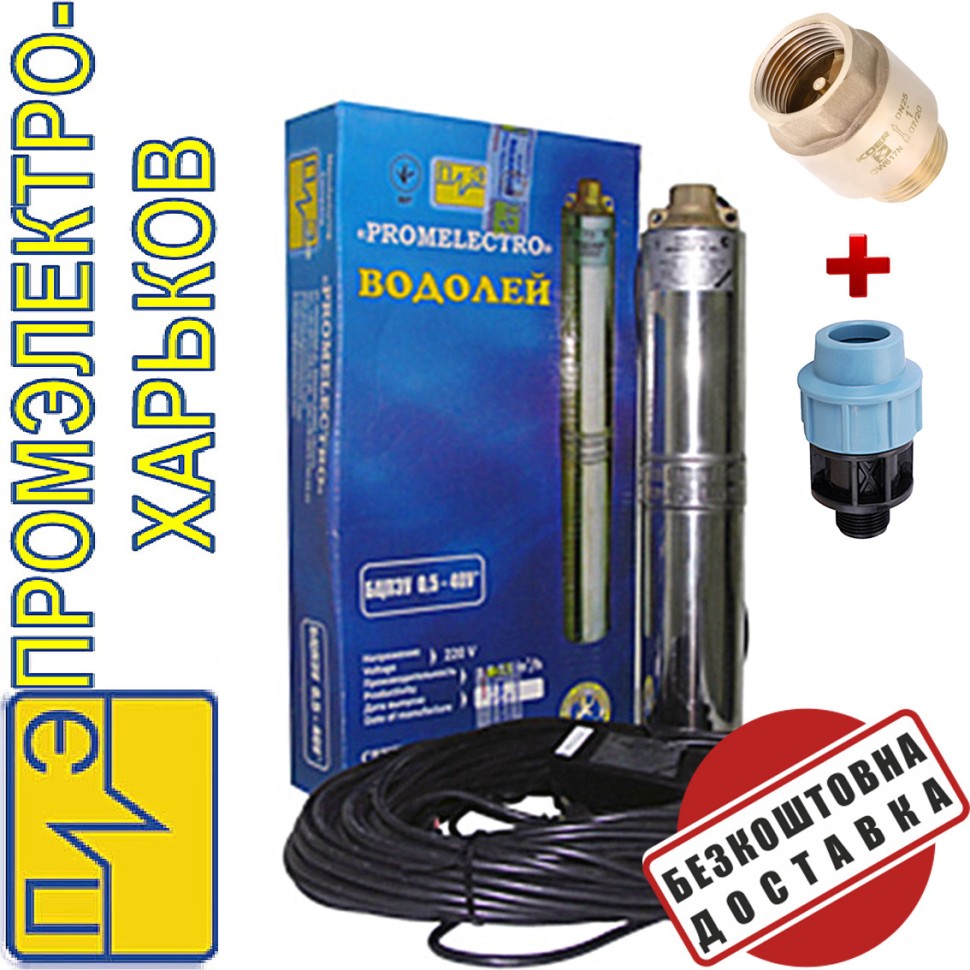 Глибинний занурювальний насос Водолій БЦПЕ 0,32 63У короткий кабель 40м