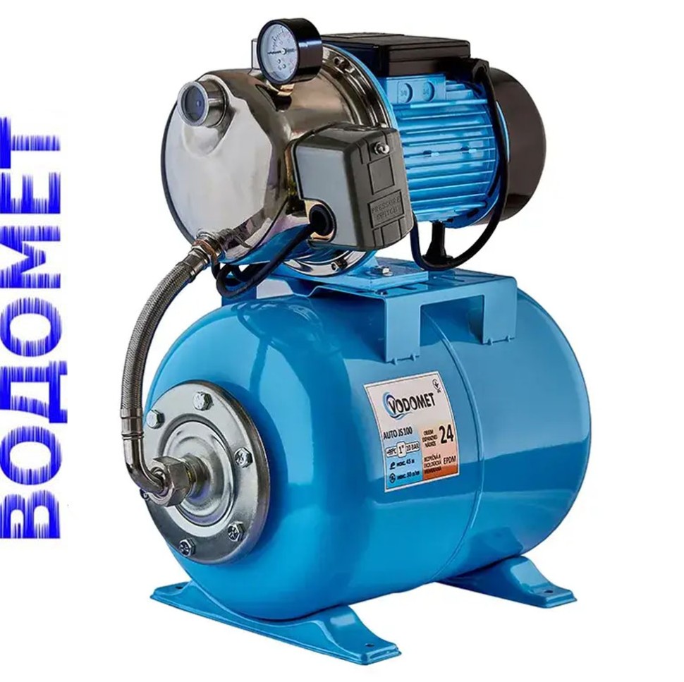 Насосная станция AUTO JS100 Н=45М, Q=3кбМ, P=1100 Вт, 1" (корпус - нерж,бак - нерж), Водомет Словения