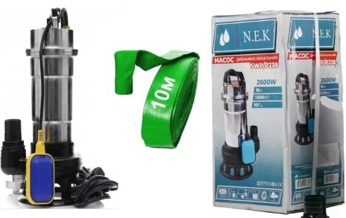 Фекальний насос N.E.K.SWP/Р-238F хромований чавун нерж. плюс шланг-10м ( для брудної води фекалій зливних ям з поплавком шла