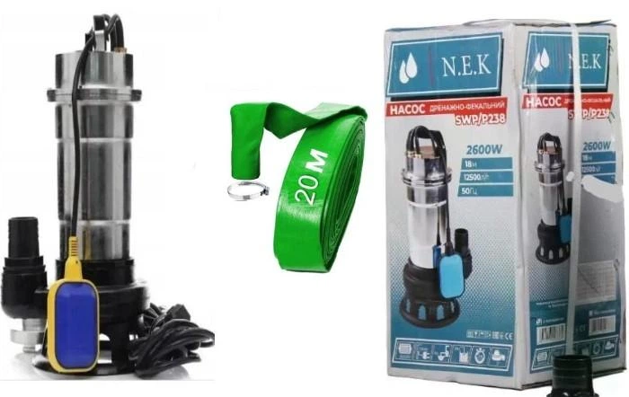 Фекальний насос N.E.K.SWP/Р-238F хромований чавун нерж. плюс шланг-20м ( для брудної води фекалій зливних ям з поплавком шла