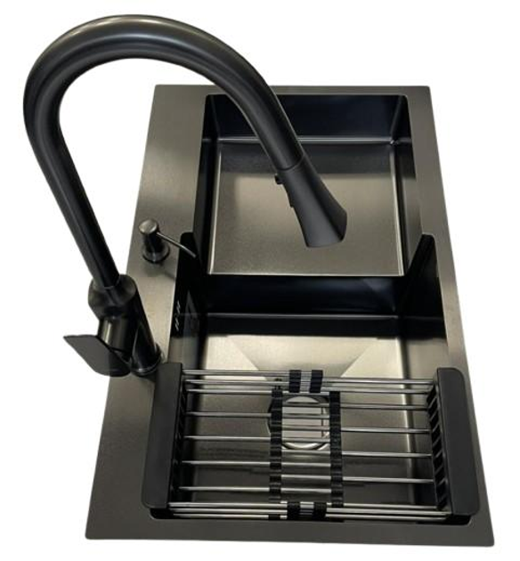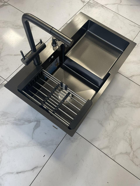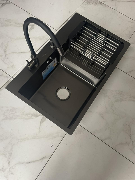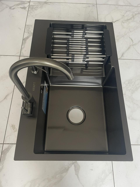 Кухонна мийка Kraft 7848 АL ліва + кран для кухні з під'єднанням до фільтра Kroner PVD03817BLK