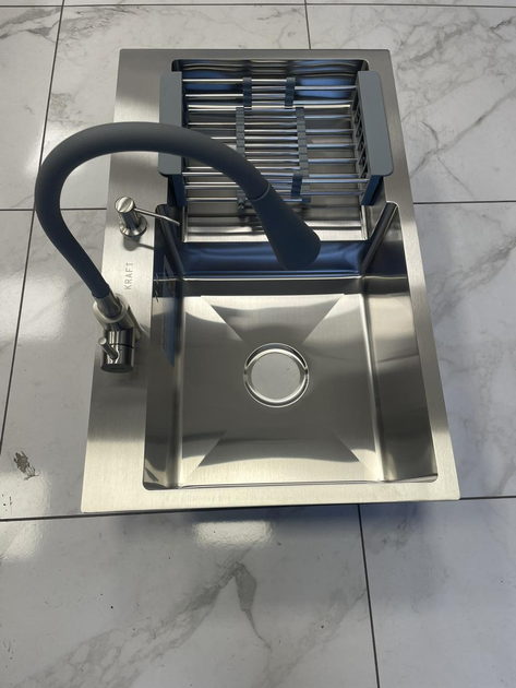 Кухонна мийка Kraft 7848 АL ліва + гнучкий кран нержавійка