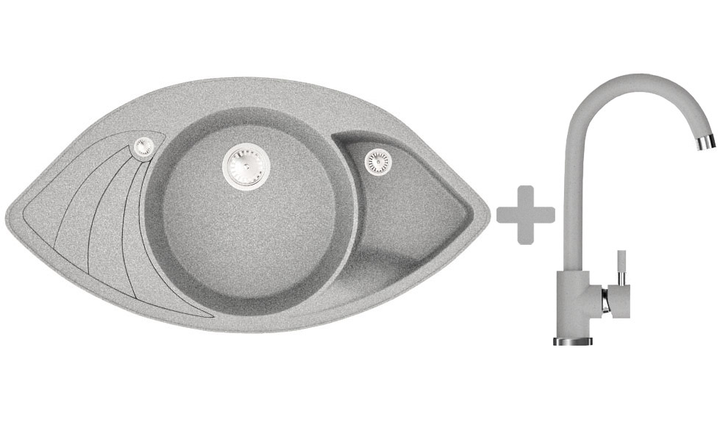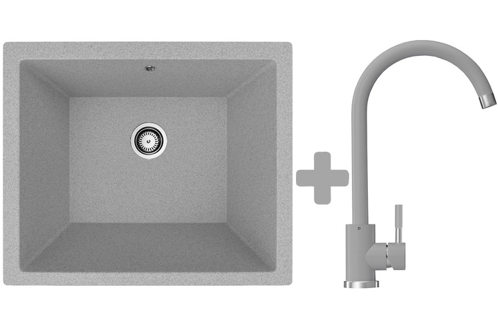 Комплект: мийка гранітна Stella Lion Сірий + Кран